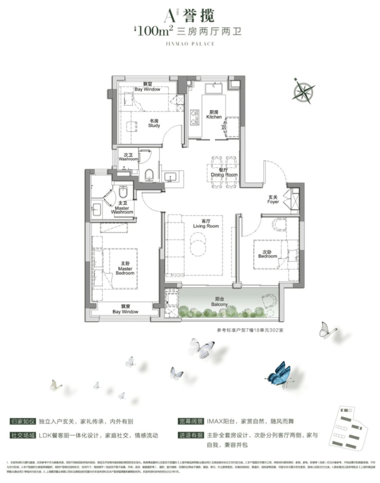 当然,作为楼盘的“常青树”户型:建面约100㎡的3房2厅2卫,功能性也直接满格!