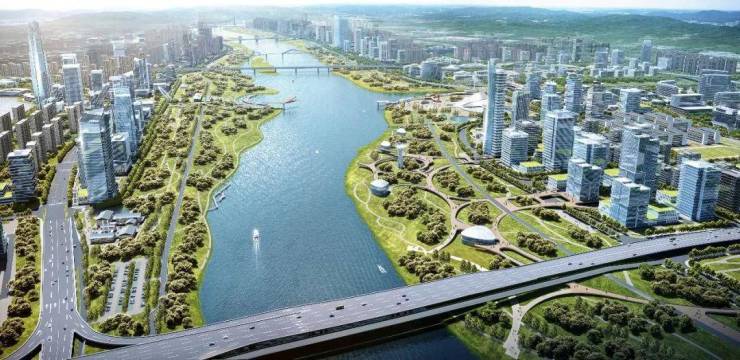 其中,作为上虞一江两岸的首发区和核心区,高铁新城片区将形成“一带一轴、三心多片”的结构体系,致力于成为上虞对外交流的城市门户和新窗口。沿江将建设企业总部集群,体育中心的对面还会有地标性建筑(娥江之星)。