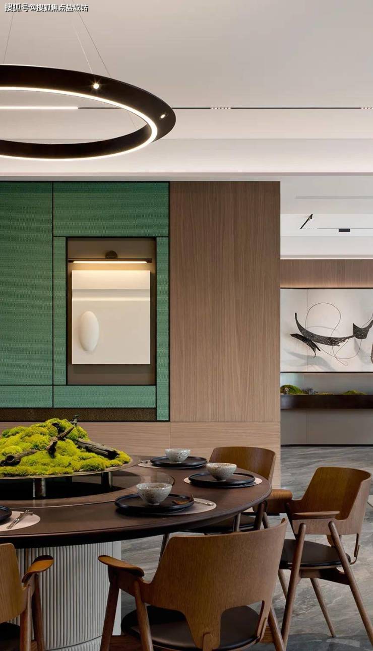 而梁景华主笔的「流金385」则通过艺术玻璃、水墨色调的潘多拉大理石和弧线造型木饰面,带来自然美学的将空间韵味,步入其中,即刻感受到无处不在的质朴与温润。