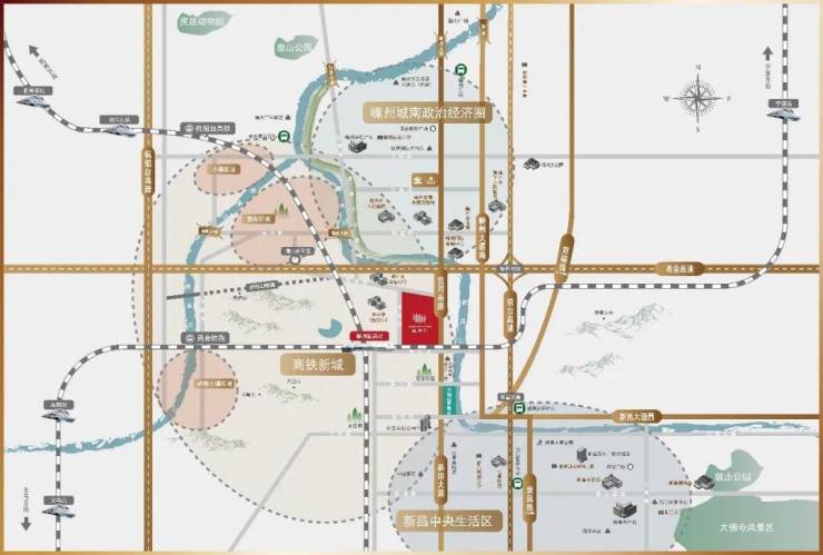 【交通规划】:距离项目内在建嵊州新昌高铁站约500米,步行即达;全方位融入杭州湾大湾区,开启高铁出行时代,形成1小时环杭经济圈;近距离接驳甬金高速嵊州南出口,直通宁波、鄞州、奉化、义乌、金华;高铁新城内部规划嵊州客运西站、嵊新城乡公交中心、嵊州新客运中心。可通达义乌、金华、衢州等城市,组成多元一体交通网。