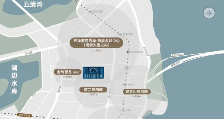 厦门云启东方,位于金砖数字工业智谷二期东侧,五通高端商务区一期南侧,五通高端商务区二期和东宅TOD西侧,距离思明开元创新社区、观音山国际营运中心、会展CBD也非常近,可以说,云启东方2公里范围圈拥有厦门最高能级的产业和配套!