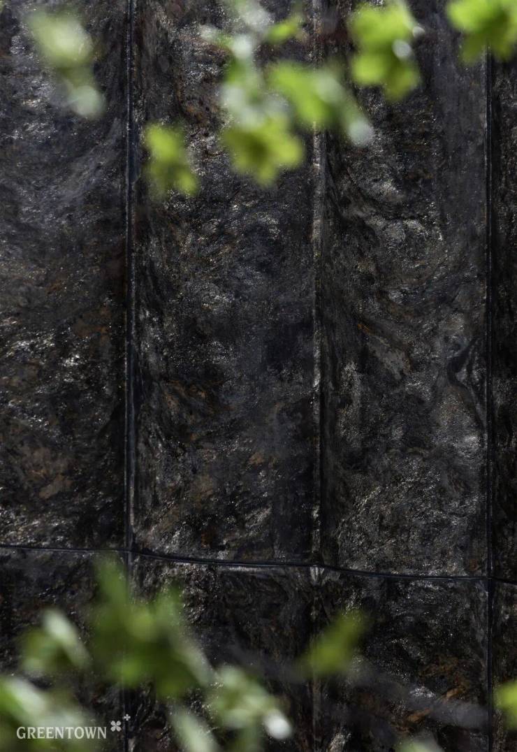 踏进主入口,“浮香水境”便映入眼帘。叠级水幕沿碧潭金沙奢石、蓝眼睛花岗岩石阶潺潺倾泻,渲染慢调归家的悠然。