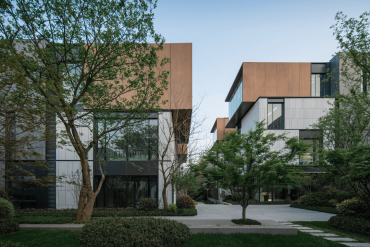 “西溪印是一次极限容量下的复合场景空间实验。在城市人工和自然生态交织的场所环境中,我们将西溪湿地中水网密布的图底关系折叠延伸至场地内部,以单元式、网格化的建筑布局对话自然肌理。”