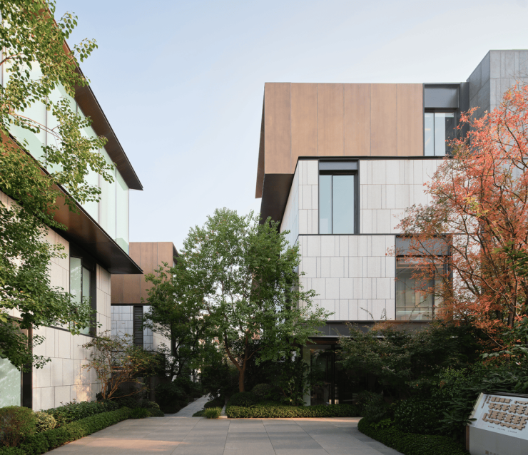 场地内的每栋建筑均有独立入口和步行廊道,外围设有缓冲绿带,构建“前院—大堂—私密空间”的递进式动线。