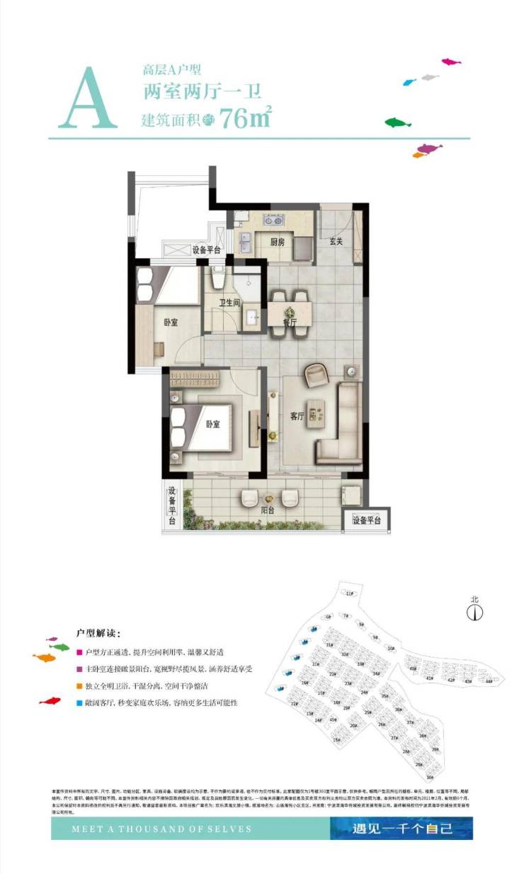 主力在售100别墅:总价从170万到220万,特点:小房子别墅享受、小面积、低总价、独立院落、赠送率约80%(花园30平左右、露台50平左右)