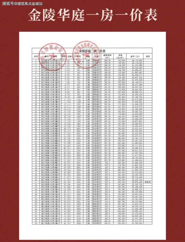 据了解,因为超高层的属性,该项目从户型到楼层定价价差较大,270平起步户型,是整盘入门价,总价在4500万到6000万,低区在4500万以下;288㎡户型朝西中高区在5000万到5600万,低区在5000万以下。288㎡的朝东户型,比西朝向要高300万左右。330㎡户型总价约6000万到8000万;几套顶层复式云顶大宅,总价1.5亿到1.8个亿。具体价格请看下图一房一价表公示。