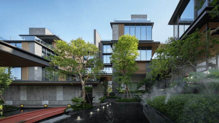 项目占地面积约3.64万㎡,规划6栋住宅楼,项目以新中式纯改善项目为特色,抬高3米的纯住宅社区、全覆盖风雨游廊、酒店式双大堂等设计元素融入建筑空间,为黄岐改善人居上高度。
