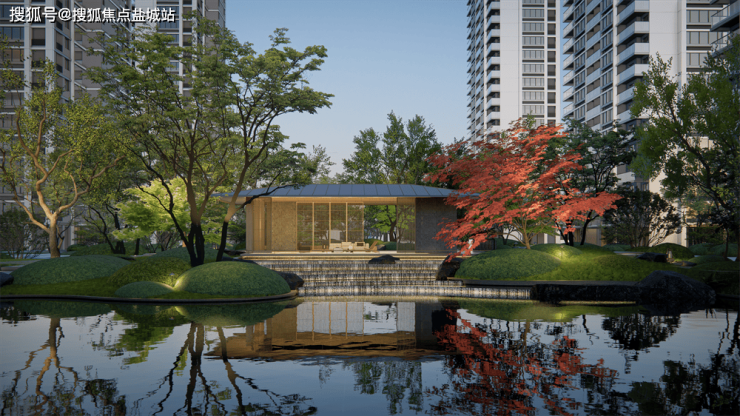 由8幢22-26F高层采用围合式的布局,南北楼幢最大楼间距超70米,大围合式的建筑布局,谦逊地退位于自然,超70m楼间距 , 为自然留下更多的可能性;近万方的中心庭院,茂盛生长;湖畔度假花园,森林花园,童趣乐园,禅林闲庭等,一个个花园串联起整座园区的生活日常。