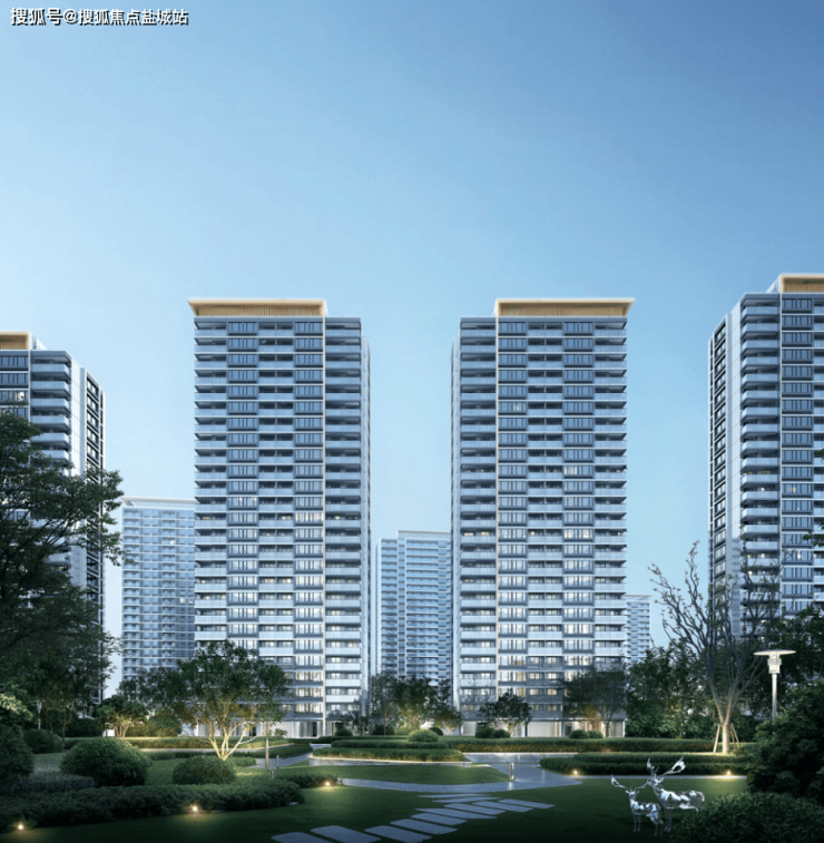 8栋高层建筑呈大围合布局,每一栋都在四面大面积铝板建筑立面、外墙三玻两腔LOW-E玻璃的基础上,注入崭新设计灵感,顶部暖色“皇冠”格栅,打上了湖畔高颜值标签。