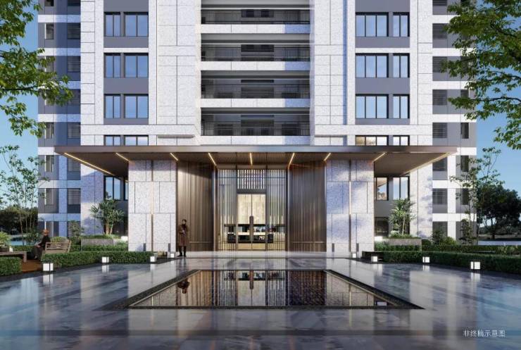 采用“无边界”设计手法,践行“全面屏”美学,以大面积玻璃+古铜色铝板+深灰色铝板+蓝眼睛石材搭配,大量运用转角窗、装饰玻璃,实现高达约63%的超大窗墙比,让整体建筑的视觉效果更透亮轻盈。