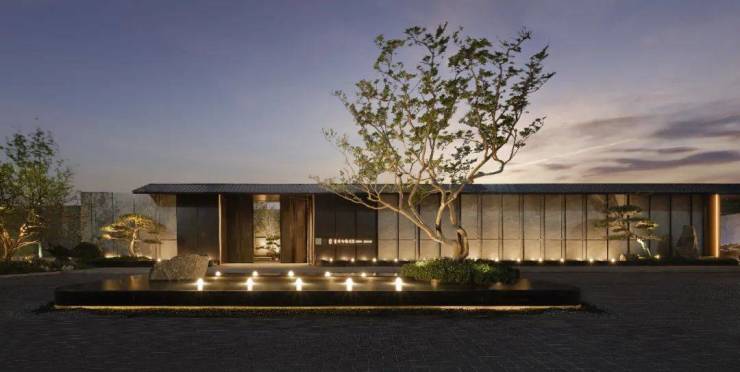 纯低密联排别墅区采用全蓝眼睛石材、铝板与Low-E玻璃组合立面,考究选材与现代设计手法相融合,呈现出雅致而不失奢华的东方宅院气质。别墅设计溯源传统东方建筑的符号特征与肌理,经由现代手法转译,突出深远出挑的檐口造型,强化横向线条的延展感。