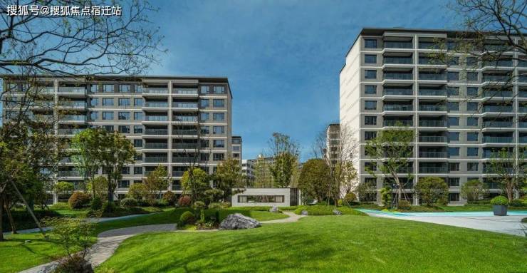 现代简约立面,恒久矗立,楼栋错落排布,与园林交相辉映,推窗即见绿树繁花、水景亭台。