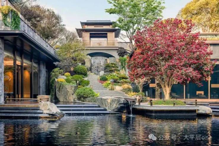 --- ▍围合式布局,让每一扇窗都盛满风景 项目以「高层围绕中心景观」的围合式排列,打破传统社区的割裂感,让5幢高层住宅与80幢排屋形成有机整体。无论是建面约99-144㎡的高层,还是约222-492㎡的排屋,每一户皆可推窗即见园林盛景。更令人惊叹的是,高层区以「双庭院+下沉式空间」的立体景观设计,预留出超大面积绿化,让归家之路如穿行于自然博物馆:中心庭院以镜面水景为魂,下沉式庭院以禅意枯山水为骨,四季花木与艺术雕塑点缀其间,真正实现「步移景异,处处皆画」的沉浸式体验。