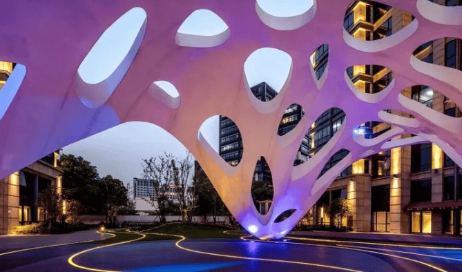 小区夜景如下