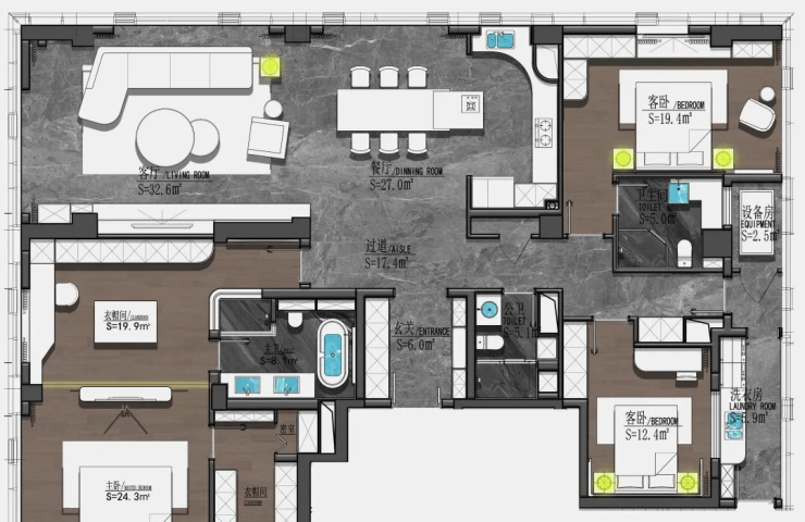 A户型·建筑面积约240㎡ | 三室二厅三卫