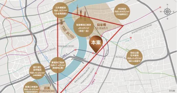 项目距离陆家嘴约4公里,距离外滩约4公里,距离前滩约5公里,与外滩隔江而望,背靠陆家嘴金融城,再往浦江上游即是“前滩-后滩”开发区,坐拥上海黄金三角发展盛景。