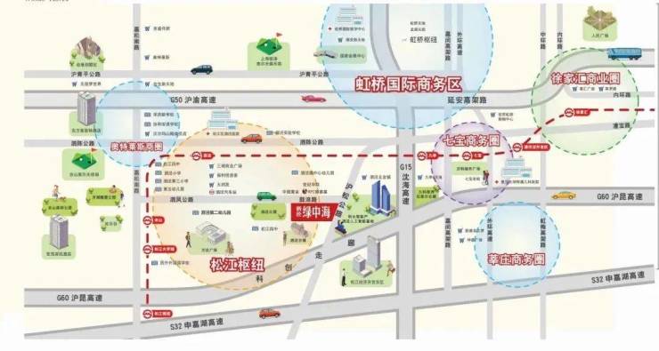 【泗泾绿中海】傲踞大虹桥及G60科创走廊国家级战略配套的中心,距离国家会展中心仅约8km,距拉斐尔云廊仅约3公里,人才居住首选板。