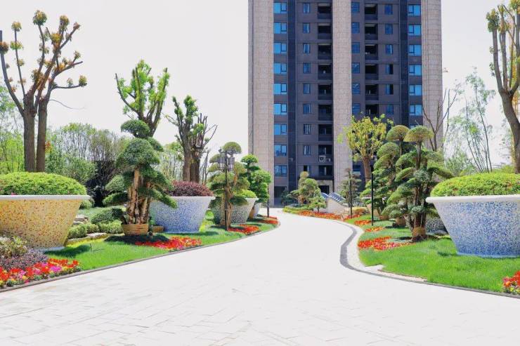社区外部沿街绿化景观,有多重花坛组成,搭配大小灌木和香樟等多种数木。还配备中央景观层叠式瀑布、景观休闲步道、儿童娱乐设施等等;