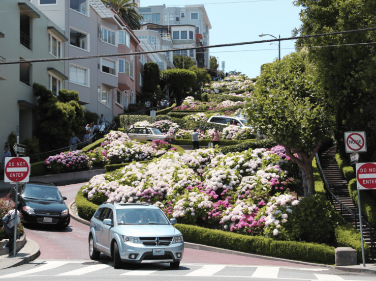 甚至,因为做了这样的高低错落,在景观上借鉴了旧金山的「九曲花街」,小区内就做了垂直高低错落的景观带,让整个社区的层次更加丰富了。