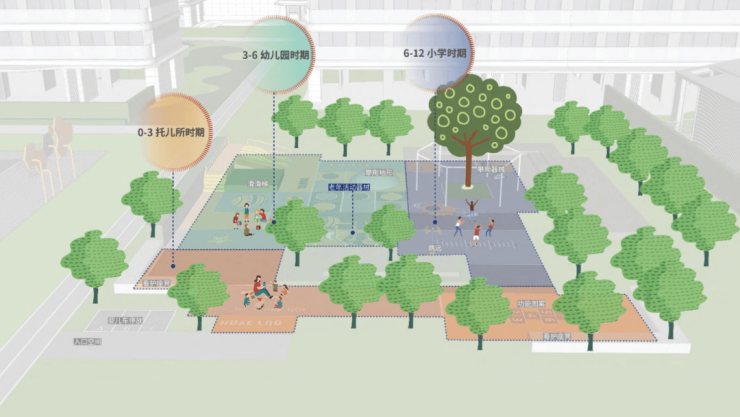 景观主轴串联酒店式落客、静逸水院、无界剧场、棒球体验、儿童活动等功能,次轴串联仪式落客、邻里花园、雨水花园、无界剧场等多元化交流空间,辅以室外有氧跑道、长者康养区以及植物造景,搭配组成未来的理想居所。