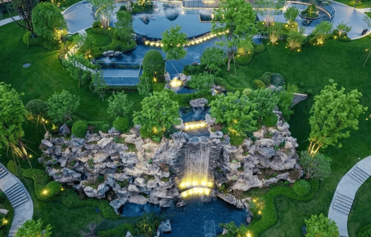 园林景观:项目自带约6万㎡私家山体园林,采用台地式围合布局,拥有跌水瀑布、天池、曲径等中式山水景观,实现“推窗见景”,居住舒适度较高。