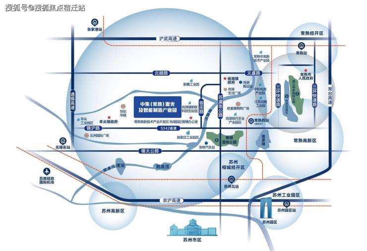 项目属常熟“西门户”,南邻苏州,西接无锡,项目距苏州市区直线距离约30 公里,距无锡市区直线距离约20 公里,距上海市区直线距离约80 公里,汇集长三角优质产业资源。项目由苏虞张、S342两条国省干线交汇,距通锡高速约6公里,距苏州硕放国际机场约22公里,30分钟通达无锡东站、常熟站、张家港站、苏州北站、常熟西站(建设中)5个高铁站。尽享长三角发展红利,赋能企业加速发展。