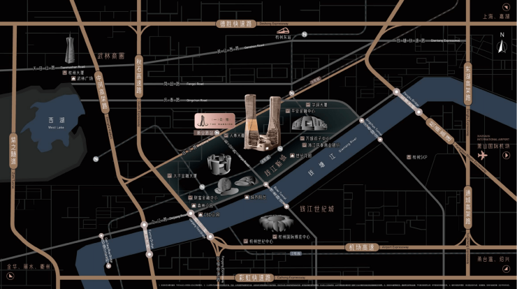 以杭州市民中心为核心的政务圈,杭州大剧院、杭州国际会议中心、城市阳台等城市地标级配套环伺左右。