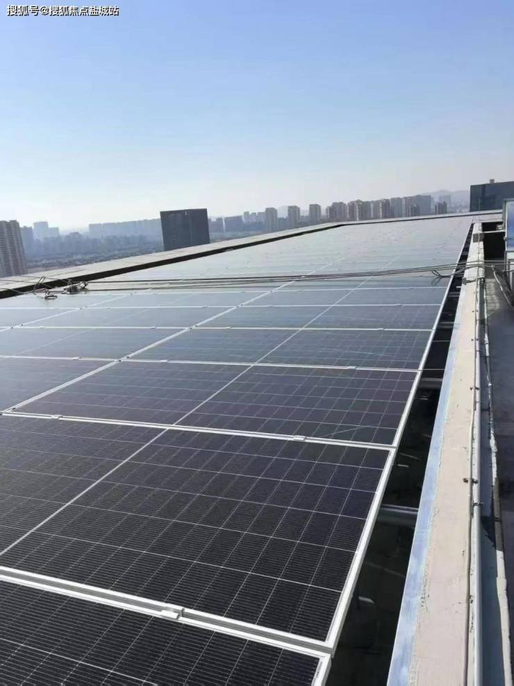 大面积铺设太阳能光伏板,楼顶光伏发电,楼下充电桩充电,自发自用,余电上网,有效降低园区能耗,为企业主削减长期运营成本。