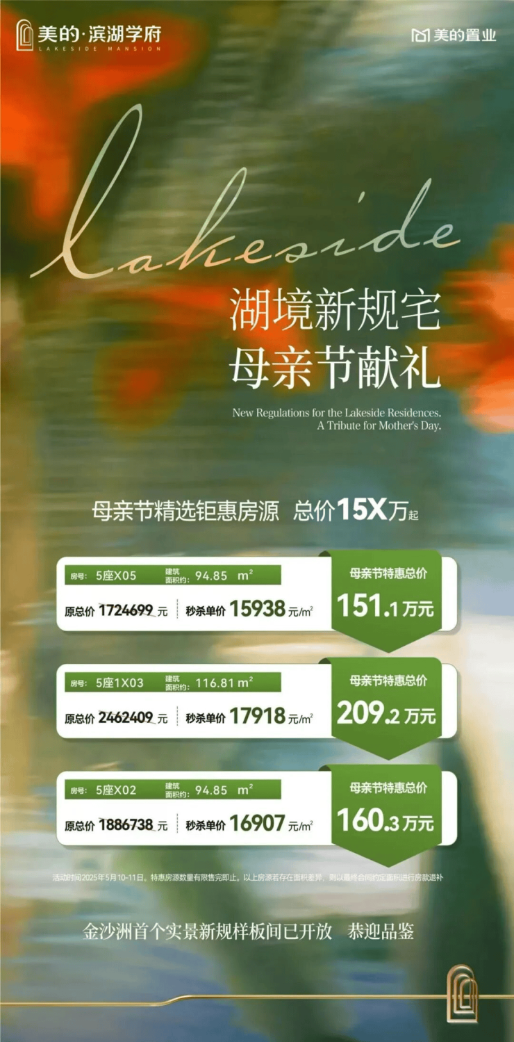 美的滨湖学府6号楼,不仅是项目的“终章”,更是里水金沙洲板块湖景资源的“句点”。95㎡三房与117㎡四房的精准产品力,3.0奢装体系的全面升级,以及“湖+学+产”的全维配套,让其成为广佛改善客群的“终极选择”。当湖景渐成奢望,新规还需久候,这座承载板块稀缺湖居印记的房子,正以“超笋价”向懂生活的你发出邀请——此刻入席,收藏一座城市的湖居传奇。