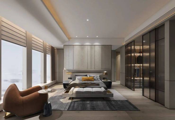 室内设计上,采用LDK一体化设计,带来极具阔正的空间尺度,并以大面米灰、暖灰为主基调,营造出高级优雅的氛围感,同时通过吊灯、艺术玻璃、酒柜等软装艺术作点缀,将艺术与生活融合,简奢中透出时尚前卫,营造出私密、温暖、现代化、国际化及独特的鼎级舒居体验。