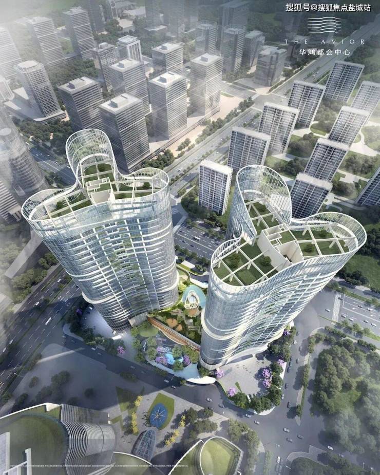 华鸿都会中心相当于奥体豪宅区的头排位置。