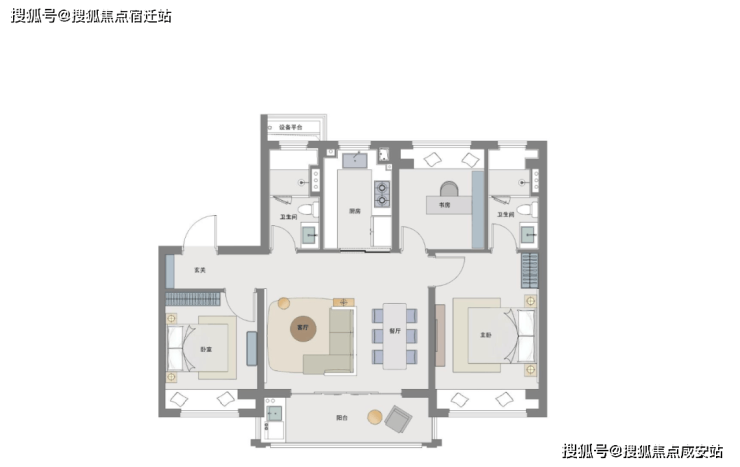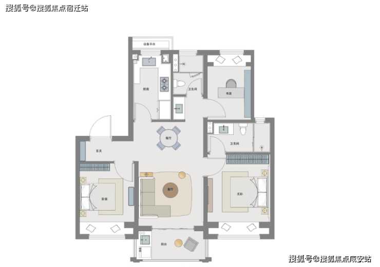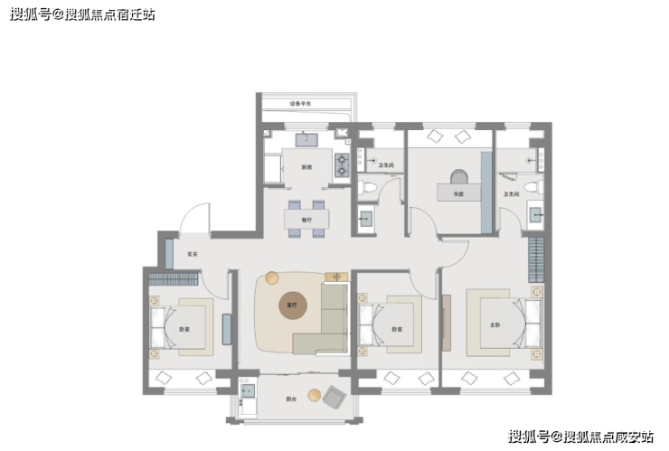户型解读:三室两厅两卫全功能户型,超高空间使用率,入户独立玄关,拂去外界喧嚣,以归家礼序相迎。