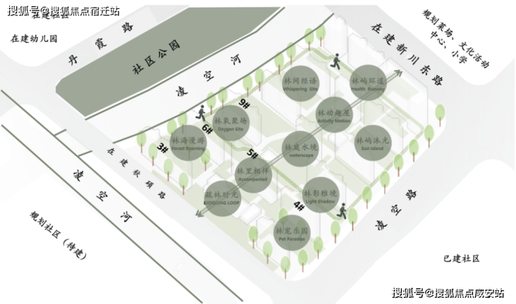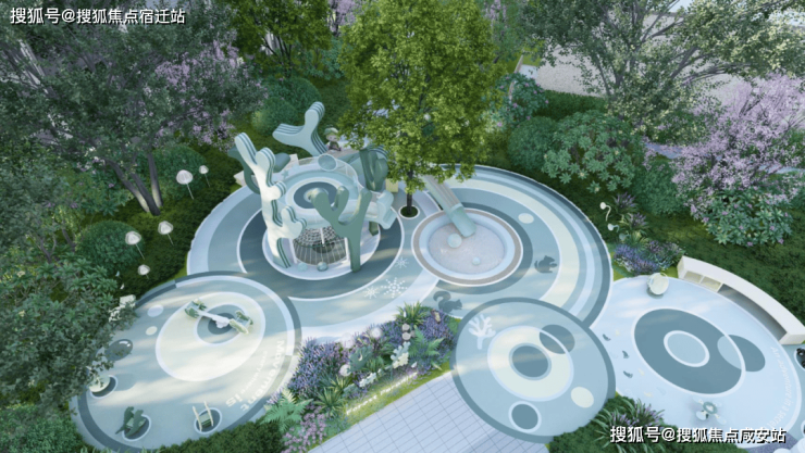根据中轴景观结构,形成交流会客、儿童活动、休闲放松、户外运动等在内的“一园十境”特色场景景观布局,并以500M的健康跑道将其衔接,满足居者多元的生活需求,呈现更松弛惬意的生活方式。