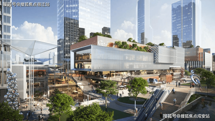 自由、丰富多彩的植物景观结合水系,以斑斓色彩表达春夏秋冬四季循环的情怀,植物间相互映衬,步移景异之间,创造出情景交融的场景。景观延续建筑的设计元素,以具有韵律感的线条结合圆角的设计语言,展现出都市的现代与包容。在空间策略的思考上,对单一的体块进行组合、链接、融合,从而形成具有不同功能的场所空间。