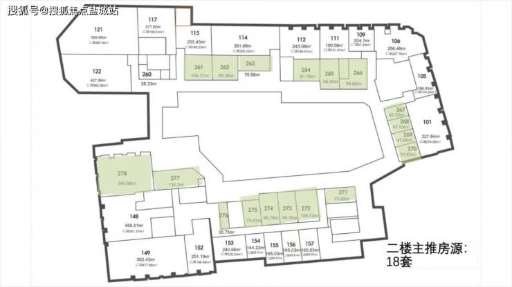 主力面积: 35-120㎡,纯一层、一托二铺,二层、三层