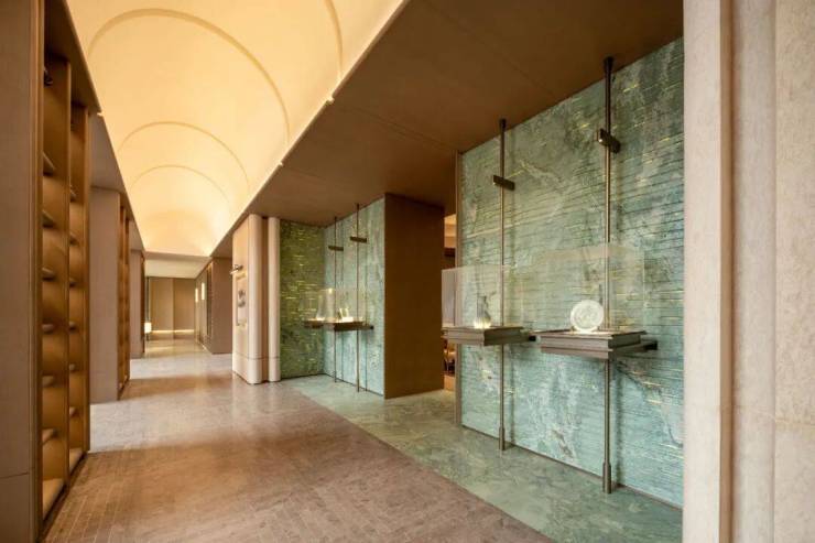 一方印章的成功与否,首先与选材关系极大,就像寿山石、青田石、昌化石之别。杭序府全球甄选名贵石材,其主入口的门厅景墙用了约1000方的稀有月光米黄石材,它通常只在全球顶豪项目如上海汤臣一品、伦敦海德公园一号中才会出现。