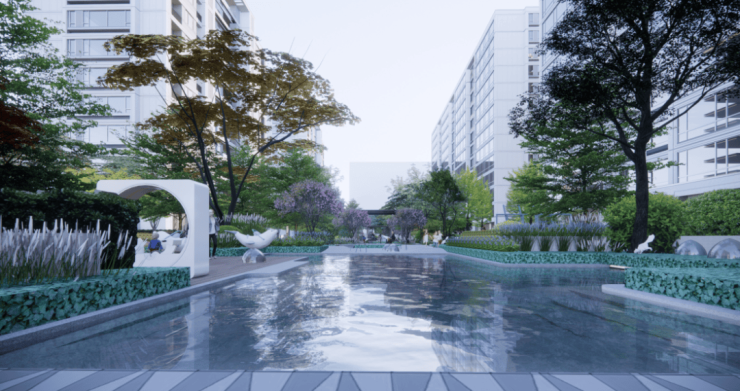 聆空云境城以“人”为尺度,在园区景观之中划分不同功能区,入口广场、儿童活动区、户外会客厅、动感花园、认知花园等场景落地,为业主创造丰富的生活体验,满足全龄段客群对城市生活、美好人居的向往。