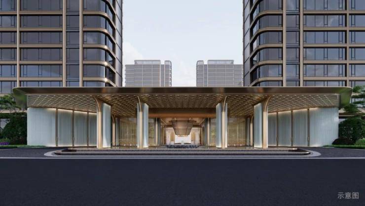 建筑立面基于经典,运用大面积玻璃设计,宛如一块巨型画布,将城市、江景收纳其中;摒弃传统的生硬线条,运用流畅且连续的弧线,赋予柔和优雅的外观;通过深灰色&香槟金铝板与巨幕玻璃组合,勾勒建筑精致感,为富春江畔缔造一座隽永、高贵而灵动的地标名片。