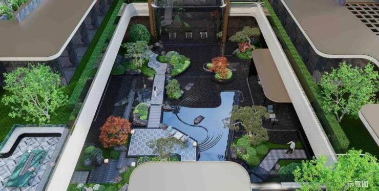 三进·中庭水镜:下沉庭院,镜面水景,会所相伴,尊贵惬意。