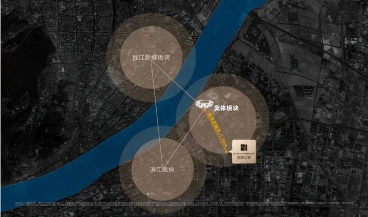 周边大小“莲花碗”、T - ONEMO(在建)、奥体中心、奥体印象城、滨江银泰城、杭州 SKP(在建)等
