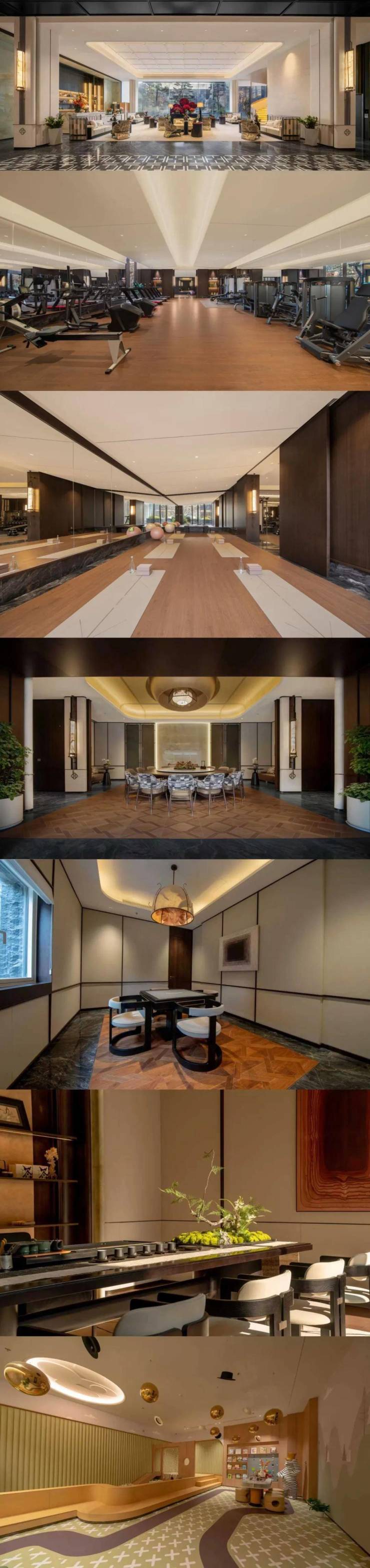 约2000㎡下沉式会所空间,规划滨水会客大堂、下沉式书吧,叠水之上的健身房瑜伽室、可容纳16席位的水榭私宴厅、棋牌室、茶艺室、童玩区等多样化空间功能,以东方仪式感的会客之道礼待八方来客,升维当代雅士的生活格调。