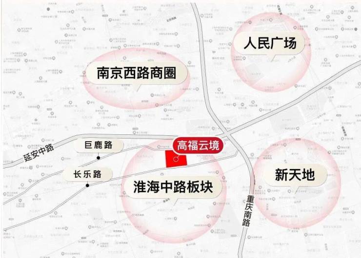 在具体位置上,高福云境位于上海百年核心商业区淮海中路商圈,北临巨鹿路,南临长乐路,正是无数上海人心目中的白月光“巨富长”街区。