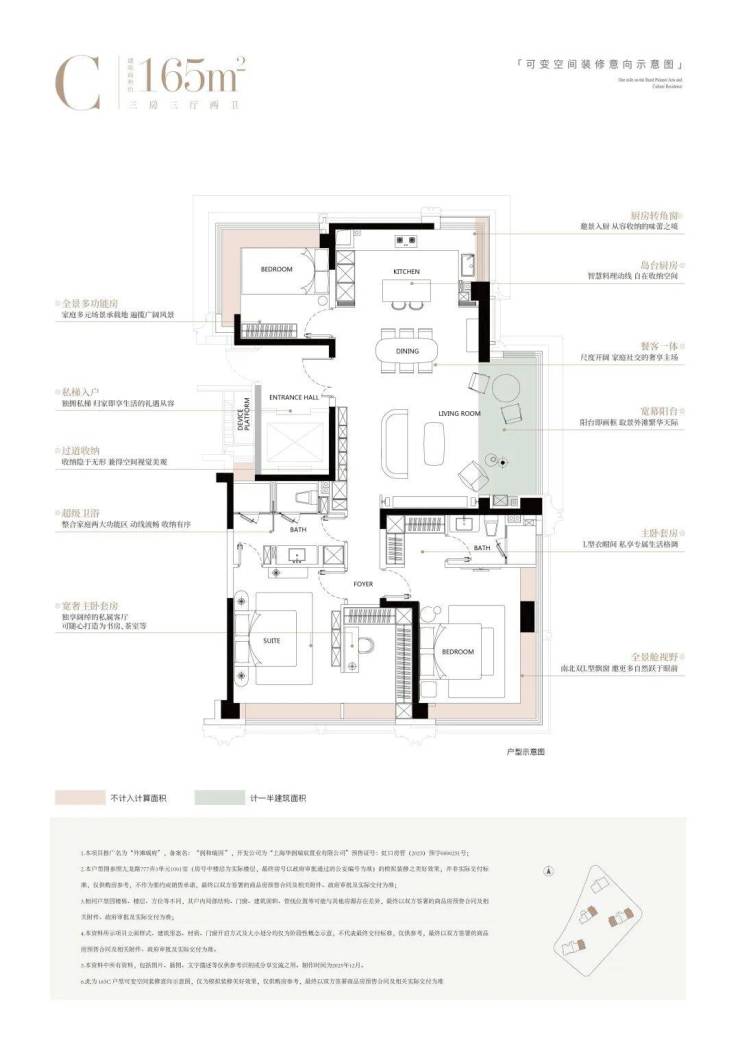 约165㎡户型 超越行业常规,提供了 空间、皮肤、功能、艺术化四大定制系统。