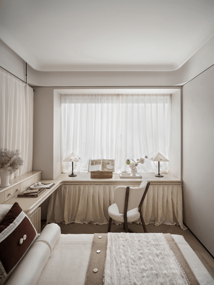 可开可合南次卧,通过一扇精致的移动门,空间可在独立客房与开放公共区域间自由切换,巧妙化解父母偶尔来访、孩子成长独立、家庭聚会扩容等多元场景矛盾。