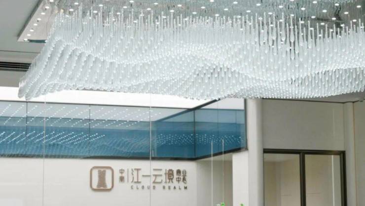 碧潭金沙的地面、清雅米白的墙面,这些原本只会在室内使用的高定配置,都被毫不吝惜的使用在这里。尤其是这盏如云雾般漂浮在空中的进口水晶灯,不仅气质凌云,造价更是超百万级。