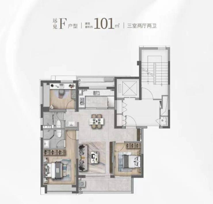 建面约101㎡精装高层、约90-136㎡叠加(毛坯)