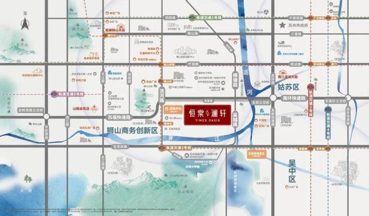 项目同时被新区CBD、古城CBD、吴中CBD包围,真正的狮山心上。