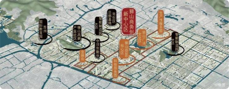 狮山商务创新区作为江苏省首个商务创新区,集金融商贸、文博旅游、总部经济、生产性服务、高端制造等功能于一体,构建 “一核一带两区”空间格局——