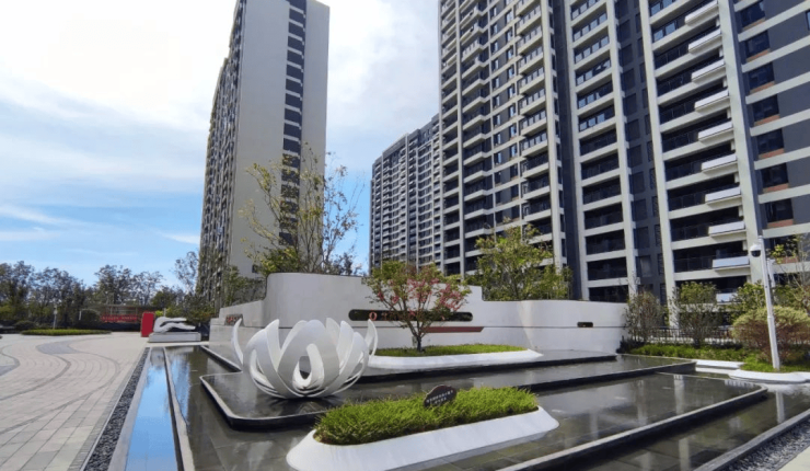 从大门进入小区后,就有迎宾水景跃然眼前,在今年异常高温的酷热天气下,无疑带来了清凉感。