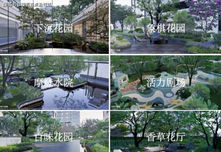 由香樟、迷迭香、夜来香等构筑的芳草花厅,缤纷色彩与清新芬芳相结合,为业主提供野餐、放风筝等场景活动;